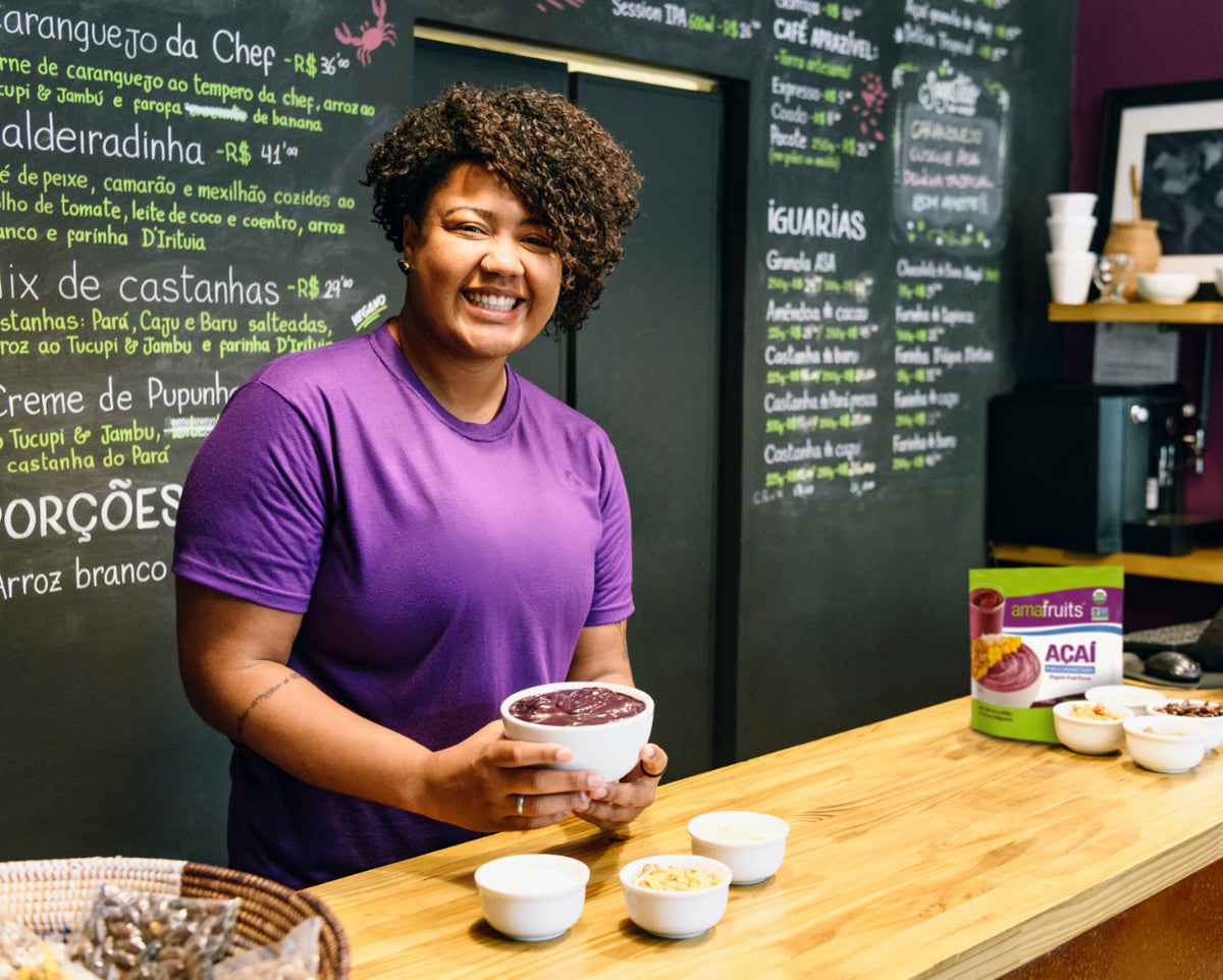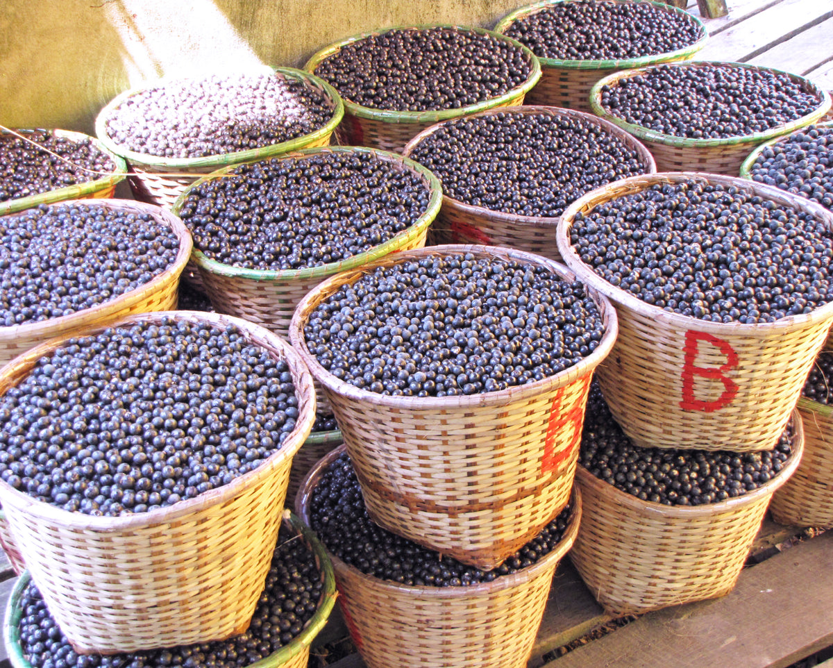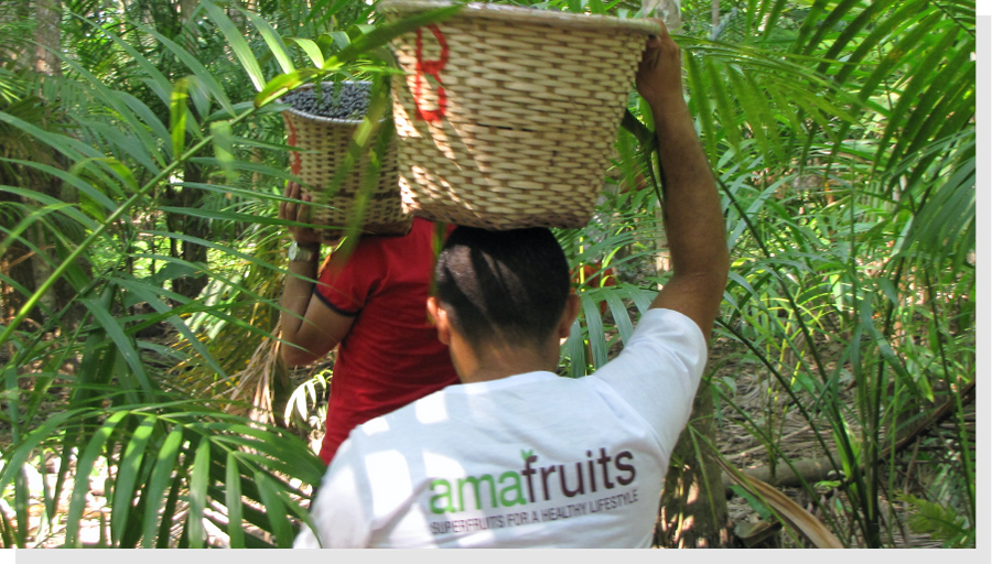 Amafruits uses hand-picked açaí berries, taken from the wild-grown açaí palms in the Amazon River drainage basin. They are naturally organic and harvested at the perfect stage of ripeness.