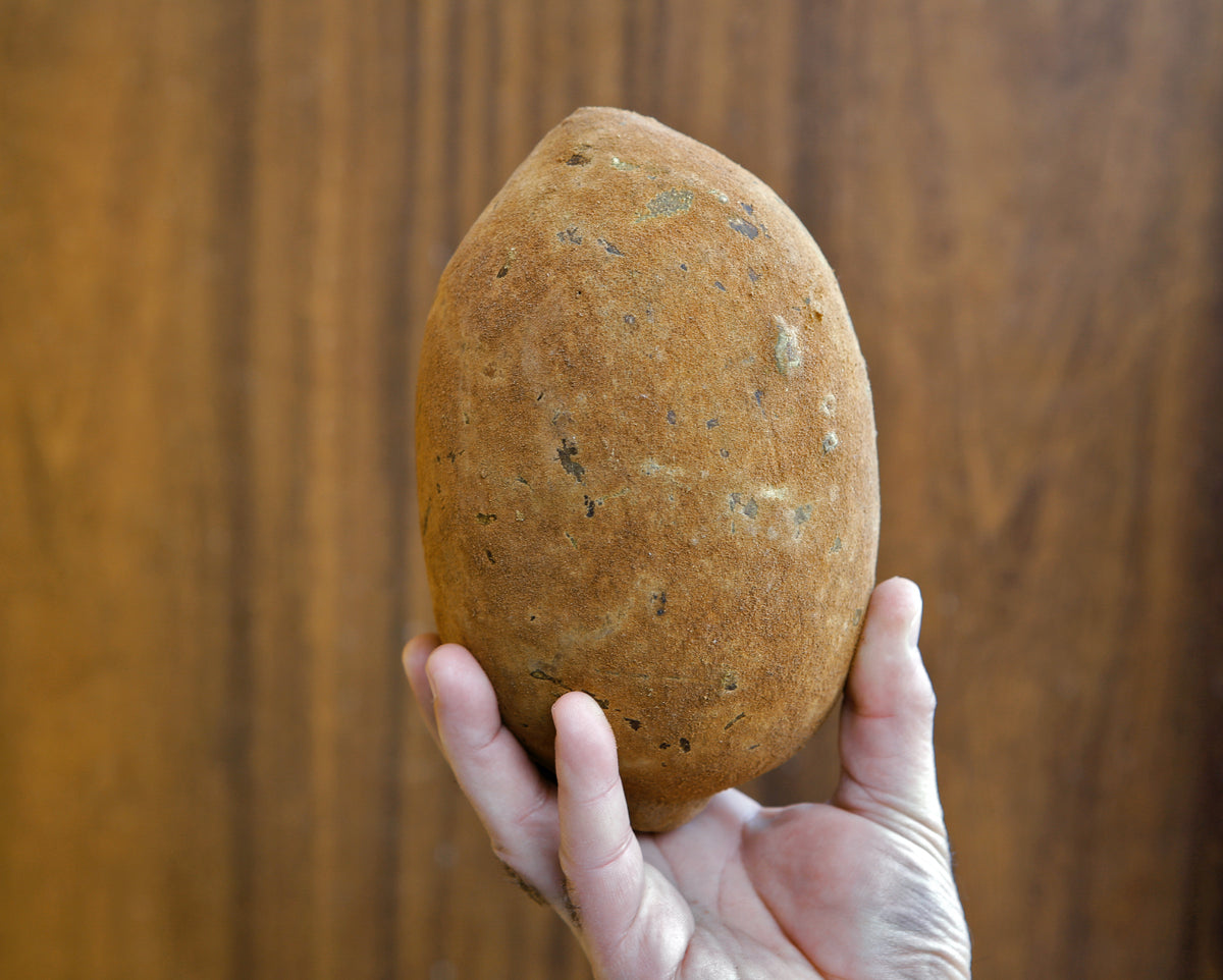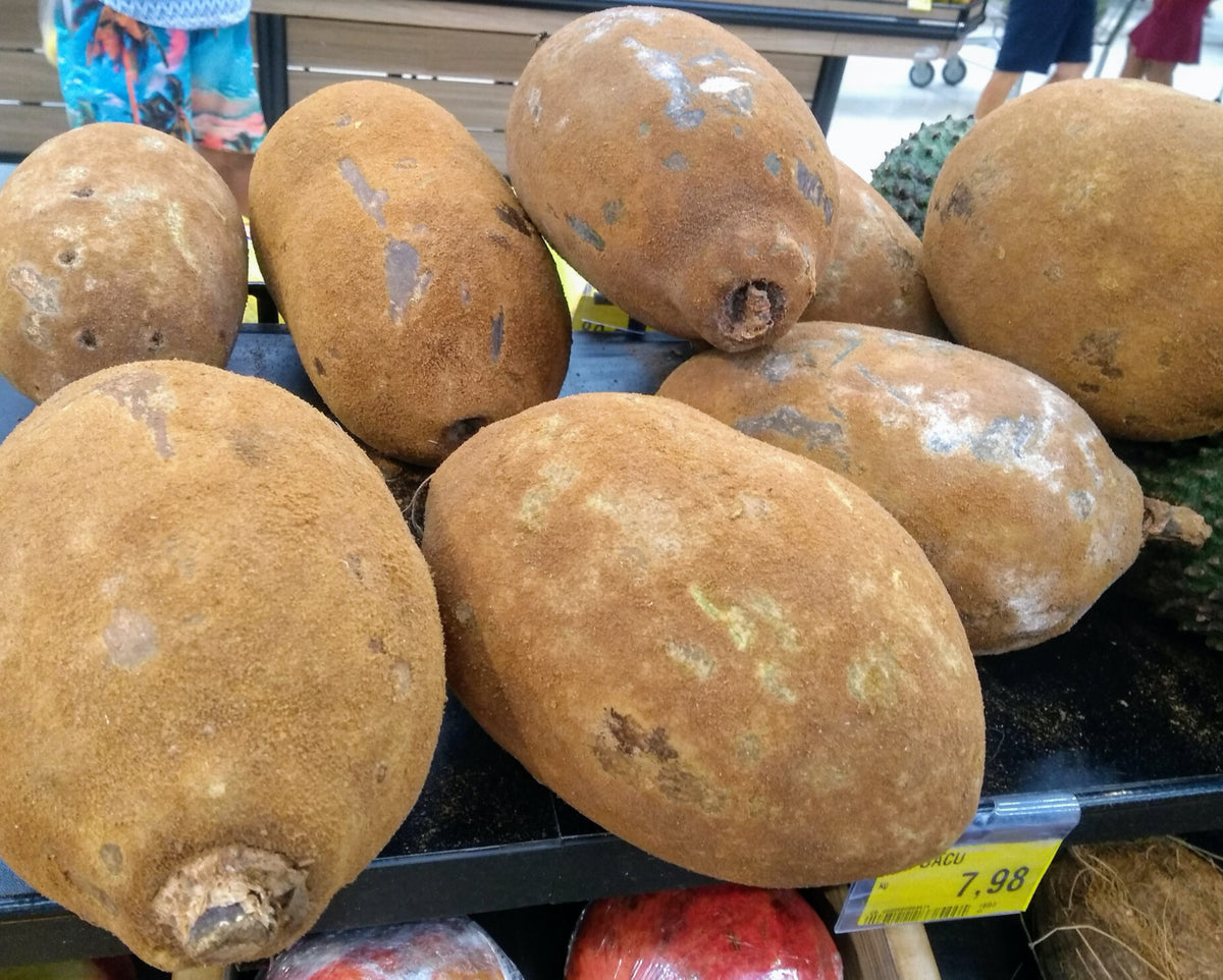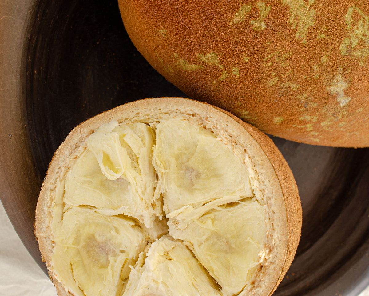 Once ripe, the fuzzy and oblong fruits look like a mashup between a coconut, a papaya, a melon, and a potato. They are covered with a thick outer skin and are harvested for both their pulp and their seeds.